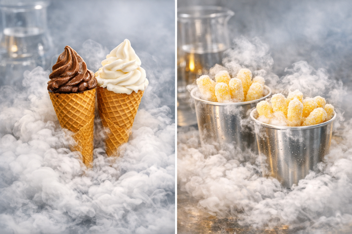 - азотные кукурузные палочки — лёгкие, хрустящие, с эффектным холодным туманом